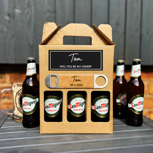 Bring a little extra cheer to any celebration with our personalised beer gift box – designed to be unique, thoughtful and full of character. Crafted from durable, high-quality cardboard, this custom beer box is available either as an empty box ready for your own drinks or as a complete gift set featuring three premium 330ml beers. Each set also includes a stylish bottle opener, available in your choice of leather or steel, making it a standout gift for birthdays, Father’s Day, groomsmen and beer lovers alike.