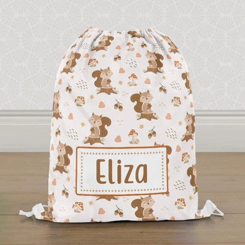 Get this cute personalised Squirrel PE Bag, perfect for your little one’s school and sports adventures! Made with water-resistant fabric, it’s ready for any activity, swimming, football, tennis, and beyond. The vibrant, fun design makes it simple to spot in the school cloakroom. Keep all their essentials organised and ready with this handy drawstring bag, featuring a print on one side, a plain white back, and sturdy chunky strings for easy carrying.