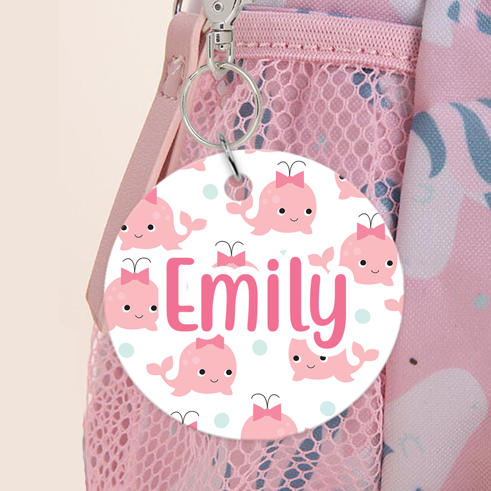 Make your bag stand out with this fun personalised Pink Whale bag tag! With hand drawn illustrations, this custom keyring is the perfect way to keep school bags, PE kits, sports bags, or luggage easy to spot. Printed on a 60mm durable acrylic tag, your chosen name will be displayed in vibrant, long-lasting colour for both style and practicality.