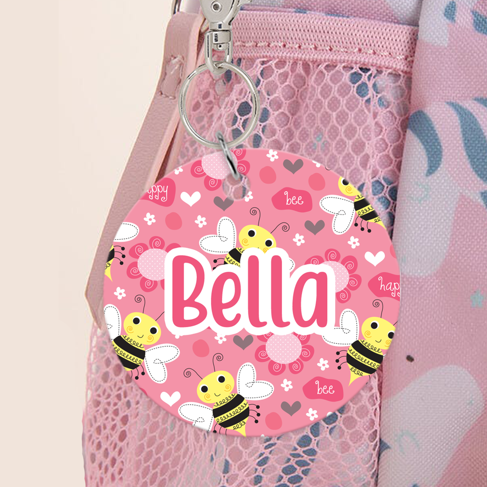 Make your bag stand out with this fun personalised Bee Happy bag tag! With hand drawn illustrations, this custom keyring is the perfect way to keep school bags, PE kits, sports bags, or luggage easy to spot. Printed on a 60mm durable acrylic tag, your chosen name will be displayed in vibrant, long-lasting colour for both style and practicality.